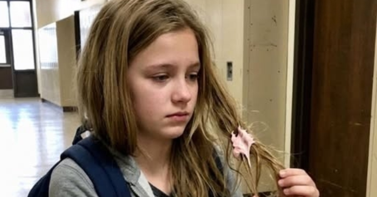Ik vond Jenny ineengedoken op een bankje. In haar blonde haar zat roze kauwgom diep vastgeplakt — het resultaat van een wrede streek van drie meisjes uit haar natuurkundeklas.