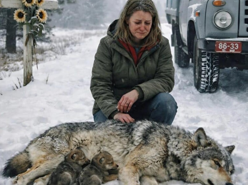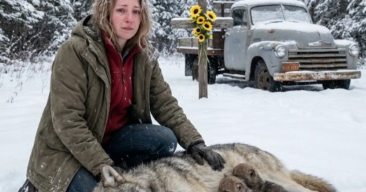 Toen ze weer bijkwam, voelde ze alsof God haar die nacht naar daar had gestuurd om deze wezens te redden. Ze begreep dat ze nu de diepe pijn van het verlies van haar geliefden een beetje kon helen door deze kwetsbare dieren te helpen. Ze pakte dekens uit de kofferbak, wikkelde de moederwolf en haar pups liefdevol in, en tilde ze één voor één in haar auto, op weg naar de dichtstbijzijnde dierenkliniek.