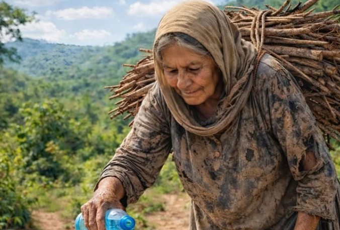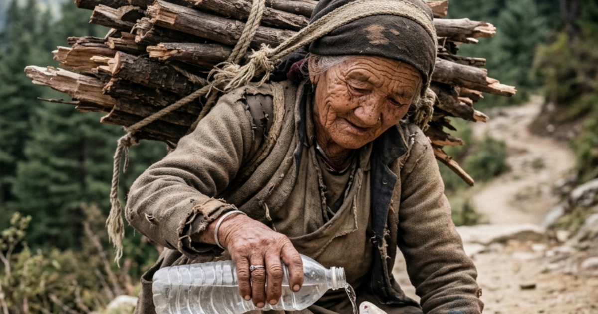 De oude vrouw was onder de brandende zon bezig met het verzamelen van brandhout in het bos toen ze bijna geen adem meer kon halen. Terwijl ze over het stoffige pad terug naar huis liep, zag ze midden op de weg een slang bewegingloos liggen. Normaal gesproken was ze doodsbang voor slangen, maar dit dier zag er anders uit: uitgedroogd door de hitte, met open bek, alsof het de dood al had aanvaard. De vrouw onderdrukte haar angst en goot aarzelend het laatste beetje water dat ze bij zich had voor de slang neer. Toen het dier plotseling tot leven kwam en zich oprichtte, raakte ze in paniek, maar in plaats van haar aan te vallen, verdween de slang rustig tussen de struiken.