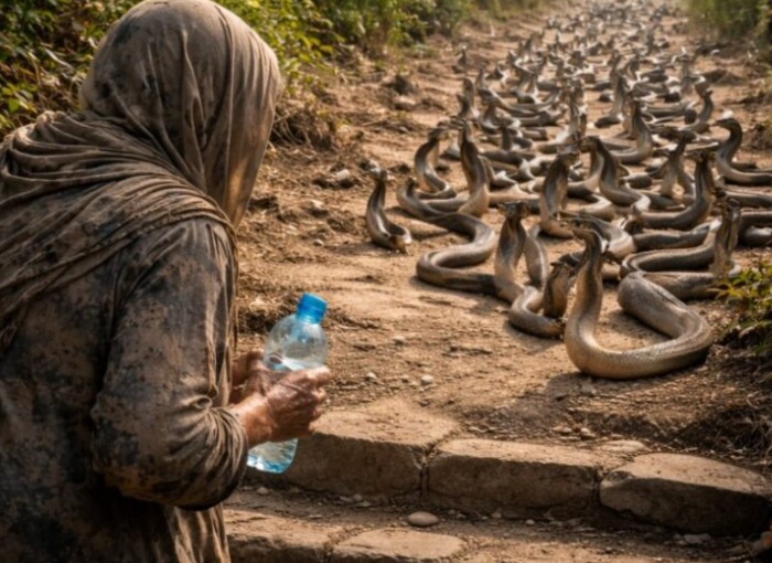 Toen de regen uiteindelijk kwam en de droogte eindigde, verdwenen de slangen net zo stil als ze gekomen waren terug in de natuur. De oude vrouw begreep dat die angstaanjagende ochtend eigenlijk een vorm van dankbaarheid van de natuur was geweest. Wat begon met één druppel water, bleef achter als een herinnering die liet zien dat zelfs de meest gevreesde wezens vriendelijkheid niet vergeten — een verhaal waar angst en een wonder in elkaar overvloeiden.