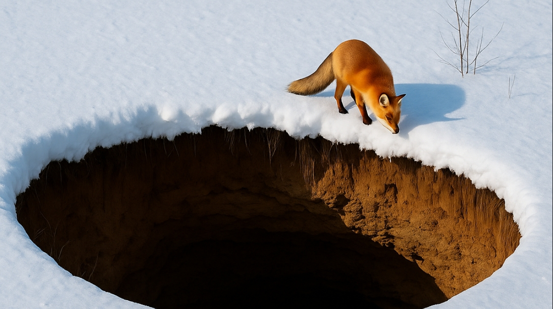 Nieuwsgierigheid won het van hen — de mannen volgden hem en zagen al snel iets merkwaardigs: de vos gooide iets in een diepe kuil. Voorzichtig gluurden ze naar beneden en verstijfden van schrik.