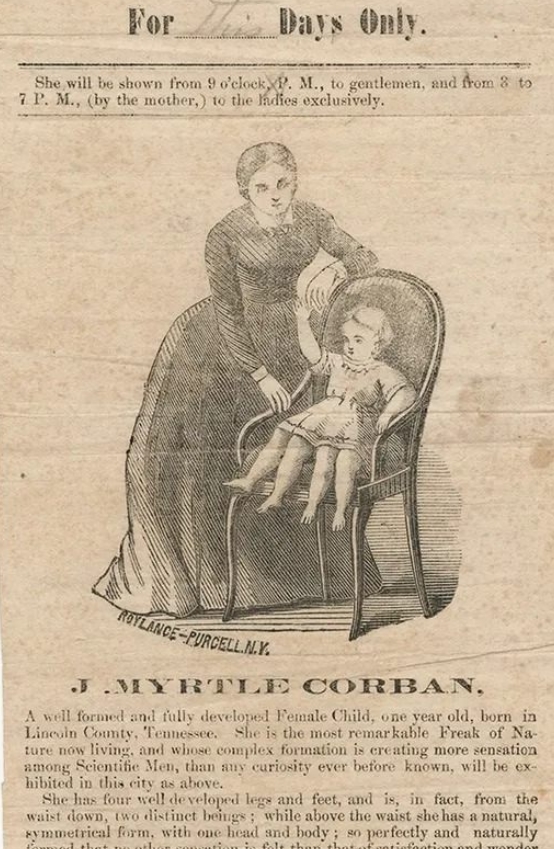 Myrtle werd geboren met een zeldzame aandoening genaamd dipygus, waardoor ze twee heupbeenderen en vier benen had. Voor sommigen was deze unieke eigenschap een wonder van de natuur, terwijl anderen het als een afwijking zagen. Ondanks de uitdagingen die haar conditie met zich meebracht, leerde Myrtle haar lichaam te accepteren en leidde ze een vol en betekenisvol leven, waarin ze professioneel succes boekte en de bewondering van haar omgeving won.