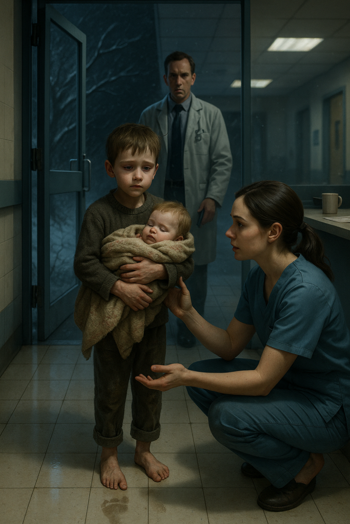 Een uur later arriveerde inspecteur Félix Monroe. Zijn gezicht, gehard door jarenlange dienst, spande zich aan onder het felle ziekenhuislicht. Hij had veel gevallen van kindermishandeling gezien, maar nooit een zevenjarige die midden in de nacht alleen arriveerde met een baby in zijn armen.