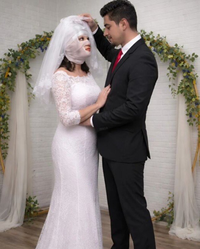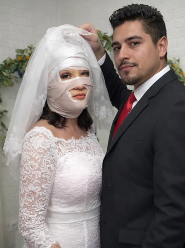 De aanblik die zich voor me ontvouwde deed me achteruit deinzen van schrik. Het gezicht van de jonge vrouw was volledig bedekt met medische verbanden, alsof het een geheim was dat niemand mocht zien. Ik begreep niet waarom ze geen woord zei, waarom ze zo was. De stilte drukte op de kamer terwijl ze met een trillende maar opmerkelijk gracieuze stem sprak: “Ik ben geopereerd… maandenlang heb ik besloten de imperfecties die me stoorden te corrigeren, en nu ben ik in herstel.” Het licht van de lamp weerkaatste in haar angstige, maar schitterende ogen die tussen de verbanden uitkeken.