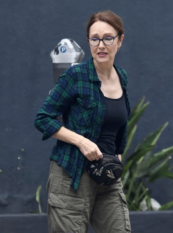 Actrice Amy Yasbeck, inmiddels 63, werd onlangs gezien in Los Angeles, stralend en jeugdig ogend zonder moeite. Ze droeg een casual outfit met een groen-blauw geruit overhemd over een zwart hemdje en kaki cargobroeken. Haar look werd afgemaakt met een strakke paardenstaart en minimale make-up. Haar natuurlijke schoonheid en stralende teint lieten haar optreden opvallen en herinnerden fans aan haar blijvende Hollywood-charme.