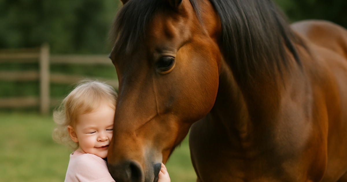 Ze sloeg haar armen om zijn nek, drukte haar wang tegen zijn zachte manen en streek met haar kleine handjes over zijn warme rug. Soms speelden ze samen op de hooizolder, en soms viel mijn dochter zelfs in slaap midden in het hooi, alsof het haar beste vriend was.