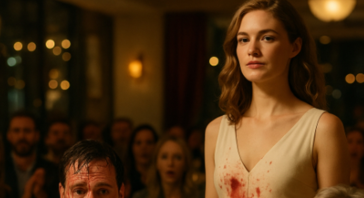 Mark begon de glazen te vullen… tot hij plotseling de fles te ver kantelde. De wijn sijpelde over mijn jurk.