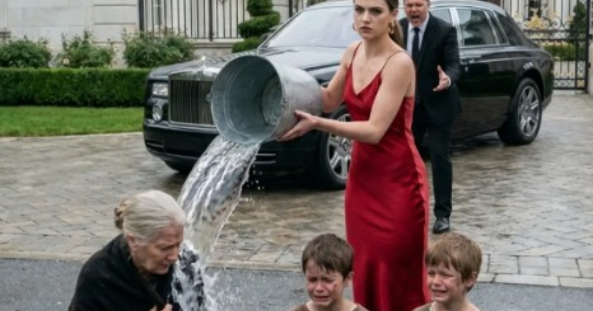 Zijn vrouw, Linda, stond met een emmer water tegenover zijn oude schoonmoeder en goot het ijskoude water over haar heen. “Laat dit je een les zijn, durf me nooit meer tegen te spreken!” schreeuwde Linda, terwijl de man verstijfd toekeek. Toen Linda haar man twee uur te vroeg voor zich zag, sloeg de paniek toe; de emmer viel uit haar handen en haar geforceerde glimlach werd vervangen door diepe angst.