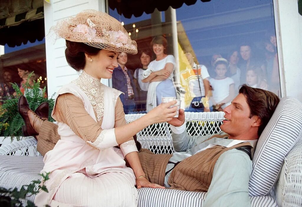 Zesenveertig jaar geleden legde een camera een moment van pure filmische magie vast op de zonovergoten veranda’s van Mackinac Island. In dat beeld stonden Christopher Reeve — de “Man van Staal” op het absolute hoogtepunt van zijn roem — verrassend menselijk en teder naast de etherische elegantie van Jane Seymour. Het was een foto genomen op de drempel van een verhaal dat een hele generatie zou definiëren binnen het romantische fantasiegenre — een glimp van twee zielen die op het punt stonden een reis te beginnen die nog lang door de gangen van het Grand Hotel zou blijven nazinderen, zelfs nadat de regisseur “cut” riep.