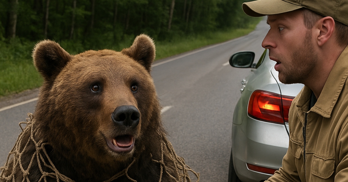 Ik zag een beer vastzitten in een net langs de weg. Ik stopte om te helpen — en wat er daarna gebeurde, liet me sprakeloos achter 😱😱