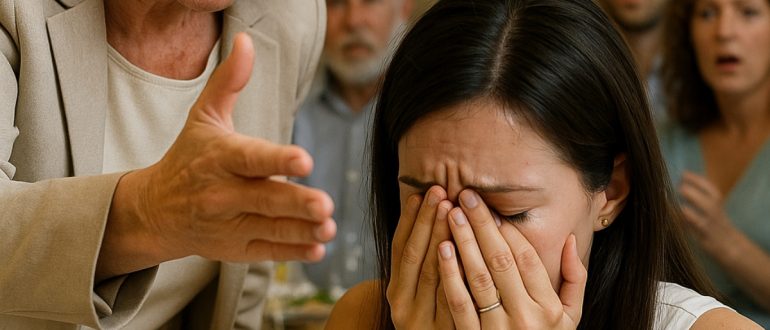 Mijn schoonmoeder schreeuwde tegen me voor de gasten en hief daarna haar hand op vanwege een slecht gedekte tafel — maar toen deed ik iets totaal onverwachts.