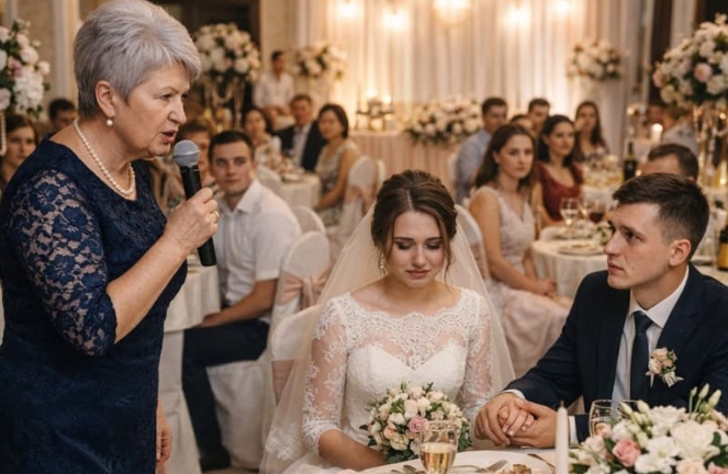 Tijdens een vrolijk huwelijksfeest gebeurde er plots iets schokkends toen de moeder van de bruidegom het woord nam. Met een koele blik en duidelijk zichtbaar minachting vernederde ze de bruid openlijk. Voor de ogen van alle gasten noemde ze haar een “arm meisje van het platteland” en verklaarde dat ze niet goed genoeg was voor hun familie. Ze benadrukte dat de bruid dankbaar moest zijn voor de kans om deel uit te maken van een hogere sociale kring, terwijl de bruidegom er zwijgend bij stond en niets zei.