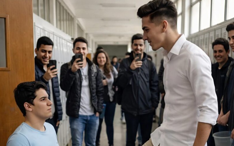 De schoolgangen waren zoals altijd luidruchtig, maar voor de zeventienjarige Alex in zijn rolstoel betekenden die geluiden altijd dreiging. De jongen, die met een lichamelijke beperking was geboren, had in de loop der jaren een soort pantser opgebouwd tegen spot en uitsluiting. Die ochtend wilde hij alleen maar naar zijn les gaan, maar de beruchte pestkoppen van de school versperden hem de weg, op zoek naar vermaak. Omstanders haalden hun telefoons tevoorschijn en begonnen het vernederende moment te filmen, terwijl Alex, zonder te weten wat hem te wachten stond, probeerde sterk te blijven.